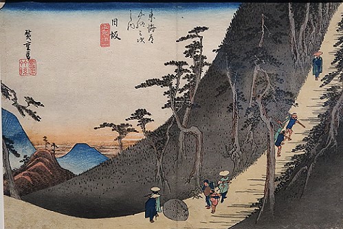 L'opera a fianco rappresenta la stazione numero 26 della via del Tokai: il passo del monte Saya a Nissaka, nella serie Hoeido.