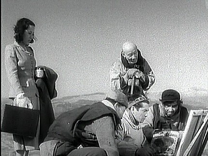 Una giovane donna, elegante ed attraente (Yoshiko Yamaguchi), arriva a sua volta nel piazzale dove Ichiro ha postato la sua attrezzatura e sta dipingendo le montagne che si affacciano alla vista.