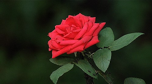 l'interminabile colonna di formiche risale lungo lo stelo di una pianta, fino a mostrare una splendida rosa nel pieno di una maestosa fioritura.
